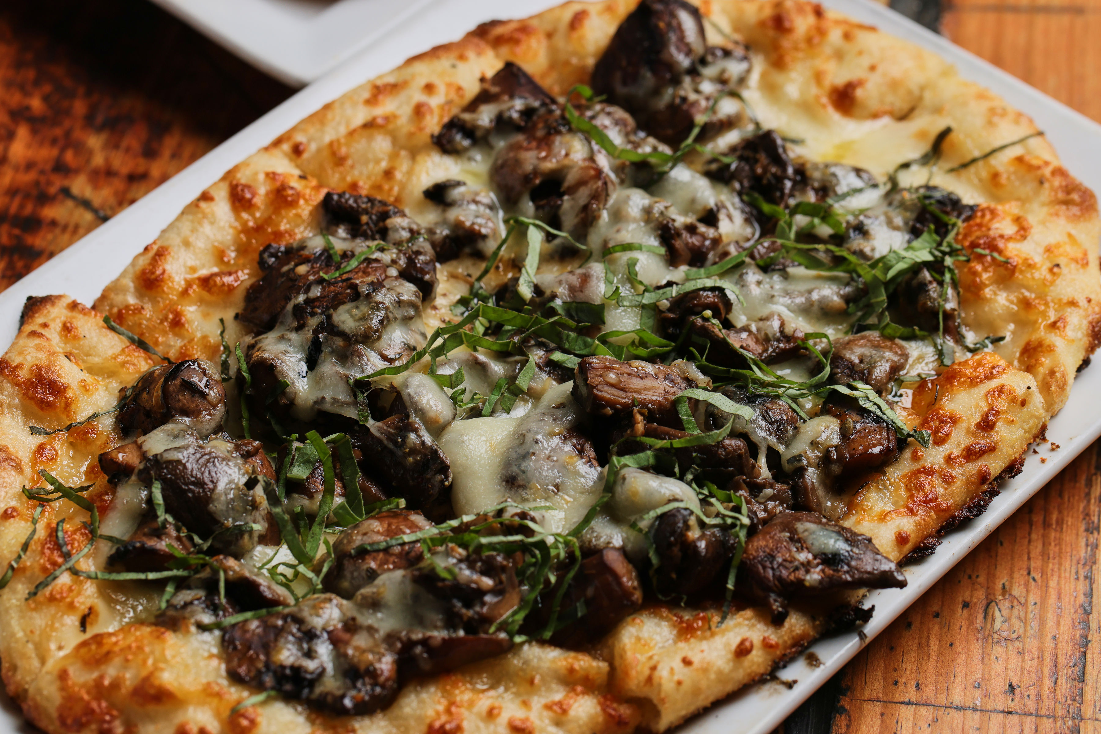 Oyster and crimini mushrooms, smoked mozzarella, truffle oil and fresh basil