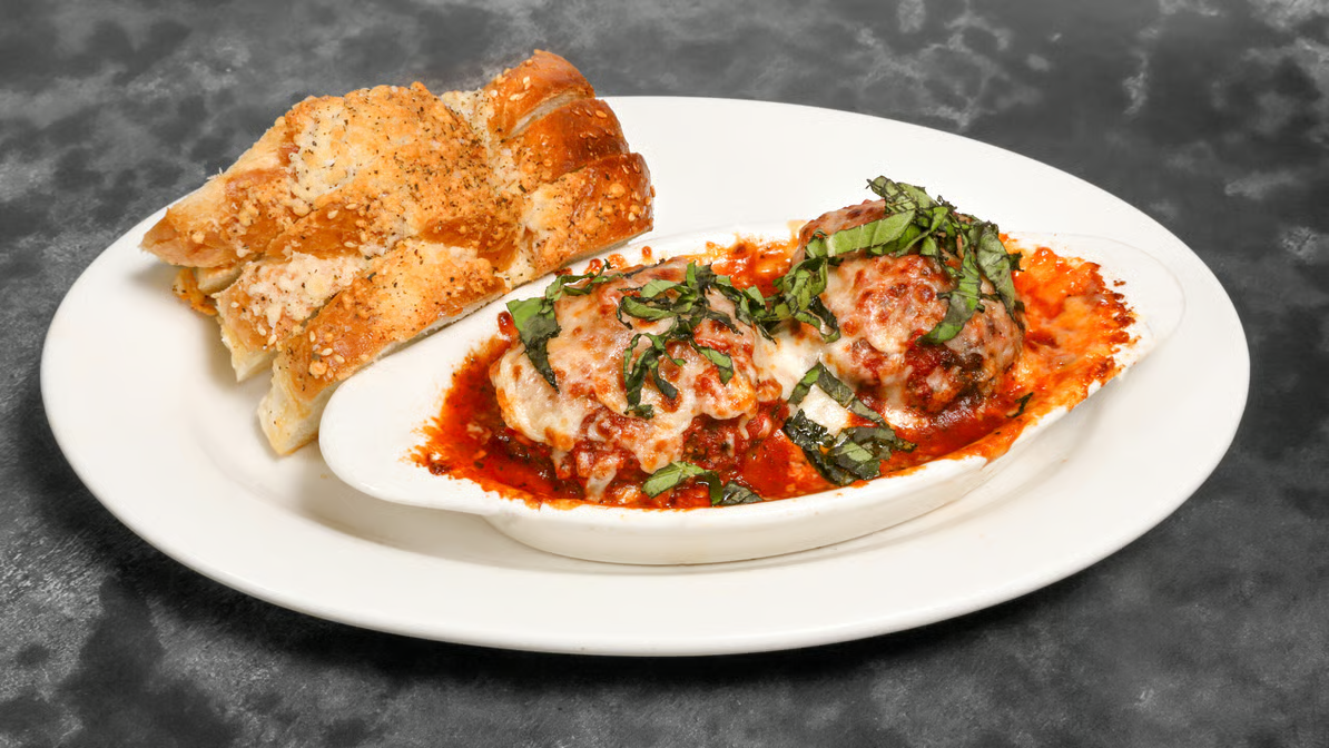 Two hand & house-made 4 oz meatballs, fresh basil, marinara, and mozzarella
